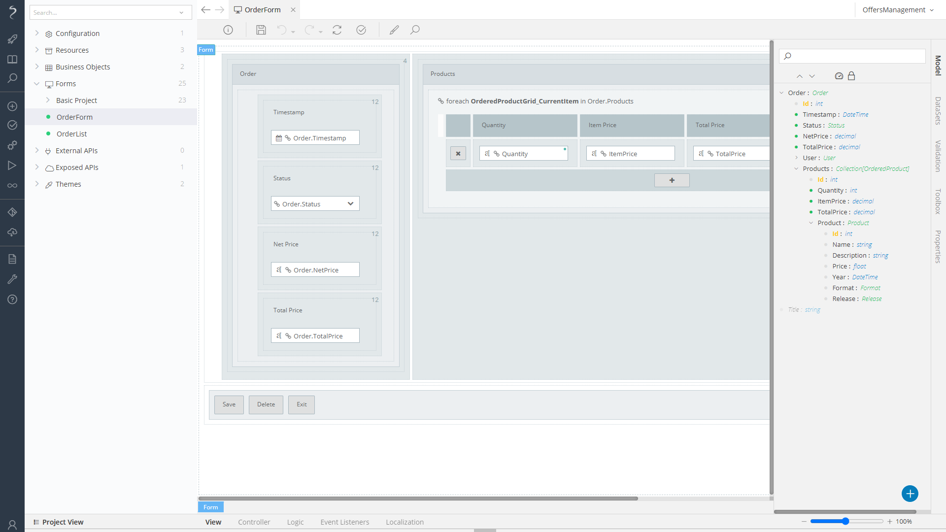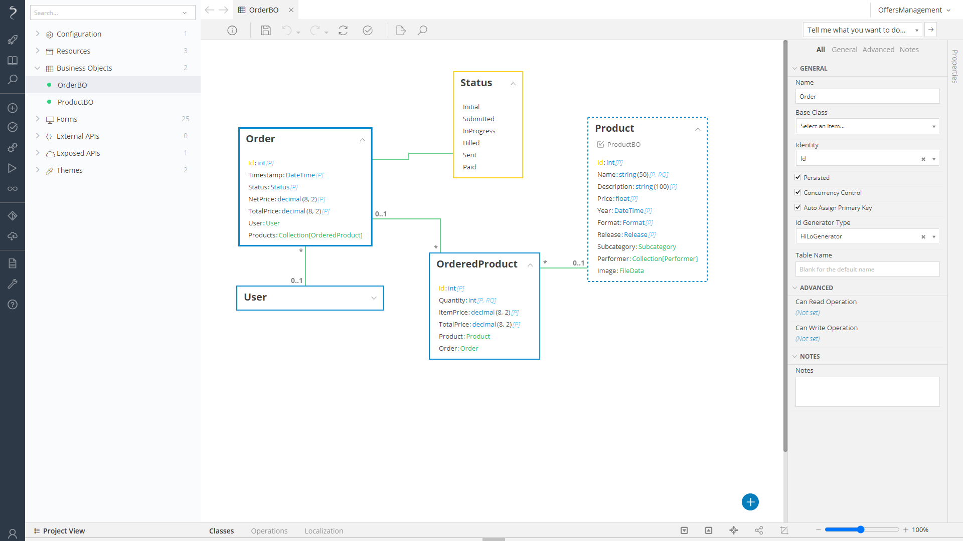 The Business Objects Editor helps the developer to capture the semantics of business entities and their relationships